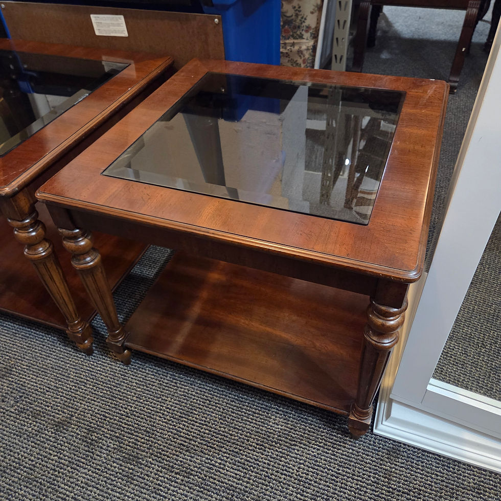 Darkwood 2 Tier Smoked Glass End Table #1-2